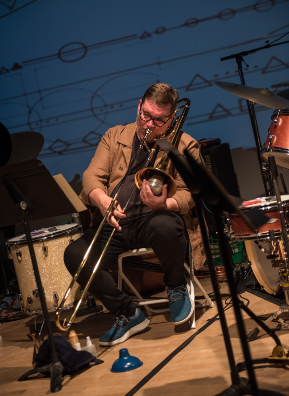Jeff has been named in the Downbeat Magazine Critics Poll Rising Star Trombone category most of the years since 2011, which should have been enough time for his star to rise… He has released albums on RogueArt and Clean Feed Records, toured and recorded with Hamid Drake’s Bindu Reggaeology band, and co-led The Lucky 7s with Jeb Bishop. His 2020 record Unanimous Sources was named a top 10 jazz record of the year in the Boston Globe. In 2022, he performed on the world premieres of Mars Williams’ “Devil’s Whistle” and Ken Vandermark’s “Two Cities Large” which was commissioned by the Instigation Festival. He has performed in improvised settings with most of the improvised music practitioners in New Orleans and Chicago, as well as a number of European based artists, so we will avoid the long list of names.
